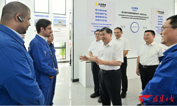 全面深化改革、擴大高水平對外開放,漳州區(qū)位優(yōu)勢突出。中沙古雷乙烯項目是中沙兩國合作共建的重大能源項目,充分展示了福建對外開放水平和一流營商環(huán)境。周祖翼詳細詢問當(dāng)?shù)貏?chuàng)新項目保障機制、相關(guān)配套服務(wù),以及建設(shè)標(biāo)準(zhǔn)化、一體化、精細化綠色石化產(chǎn)業(yè)園區(qū)等情況,叮囑全力把項目建設(shè)好,發(fā)揮龍頭引領(lǐng)作用,帶動上下游產(chǎn)業(yè)鏈協(xié)同發(fā)展,建設(shè)綠色環(huán)保園區(qū),助力福建打造萬億級石化產(chǎn)業(yè)。要嚴(yán)格落實安全生產(chǎn)責(zé)任制,強化施工現(xiàn)場安全管理和監(jiān)督,確保項目安全有序推進。東山對臺客貨運碼頭是兩岸互聯(lián)互通的重要樞紐。周祖翼對碼頭吞吐量、建設(shè)規(guī)劃、智慧化管理、與臺灣經(jīng)貿(mào)往來等情況一一進行詢問,希望優(yōu)化兩岸人員往來、貨物通關(guān)流程,主動對接“一帶一路”建設(shè),拓展與東南亞國家的海運聯(lián)動;完善周邊配套和物流園區(qū)建設(shè),強化“港產(chǎn)城”融合發(fā)展。
