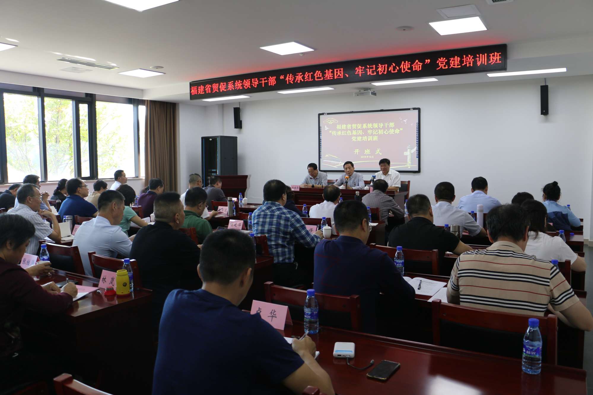 為進一步鞏固“不忘初心、牢記使命”主題教育成果,持續(xù)強化貿(mào)促會黨的群團組織屬性,落實貿(mào)促系統(tǒng)深化改革關(guān)于全面加強黨對貿(mào)促會領(lǐng)導的要求,推動全省貿(mào)促系統(tǒng)黨建工作, 10月22日至24日,省貿(mào)促會在龍巖舉辦“傳承紅色基因、牢記初心使命”黨建培訓班,全省貿(mào)促系統(tǒng)42位處級干部參加培訓。