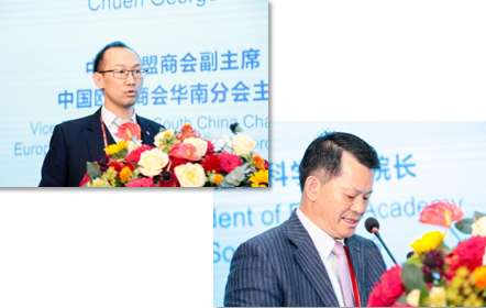 中國(guó)歐盟商會(huì)副主席劉暢、福建省社會(huì)科學(xué)院副院長(zhǎng)李鴻階分別進(jìn)行主題演講
