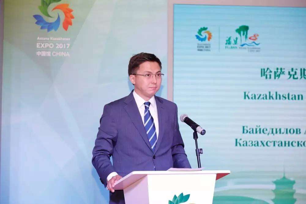 ? ? ? ? “魚肉、蔬菜、木器……福建省有著數(shù)不盡的豐富產(chǎn)品和資源,我相信,哈薩克斯坦與福建省有著廣闊的合作前景?!卑恰た苾?nèi)斯別科維奇·巴依耶季洛夫署長(zhǎng)在致辭中表達(dá)了積極的合作愿望,他說(shuō),“千里之行,始于足下”,哈薩克斯坦有著獨(dú)特的投資機(jī)遇,歡迎多種形式的合資、合作,2017年世博會(huì)正是一個(gè)良好的開(kāi)端。目前,中哈兩國(guó)已有51個(gè)合作項(xiàng)目正在進(jìn)行,總金額超過(guò)20億美元。他相信,中國(guó)館23個(gè)省市區(qū)活動(dòng)日的舉辦將進(jìn)一步擴(kuò)大這一合作成果。