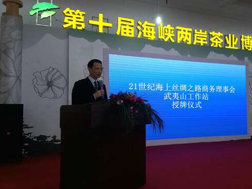 ? ? ? ? 11月17日上午,作為第十屆海峽兩岸茶業(yè)博覽會重要活動之一的21世紀(jì)海上絲綢之路商務(wù)理事會聯(lián)絡(luò)辦公室武夷山工作站授牌(揭牌)儀式在福建武夷山市凱捷巖茶城舉行。?