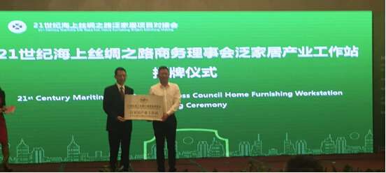 張秋會(huì)長(zhǎng)為21世紀(jì)海上絲綢之路商務(wù)理事會(huì)泉州工作站、泛家居產(chǎn)業(yè)工作站的授牌儀式