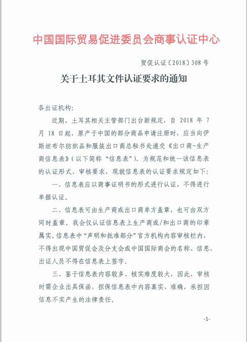 工作動(dòng)態(tài)通知公告 關(guān)于土耳其文件認(rèn)證要求的通知