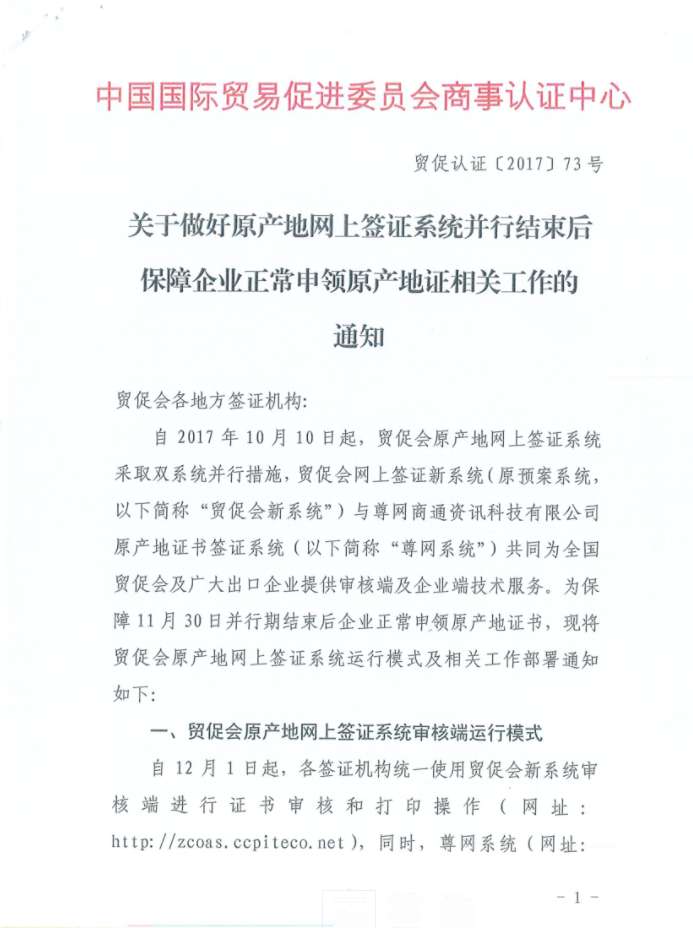 工作動(dòng)態(tài)通知公告 關(guān)于做好原產(chǎn)地網(wǎng)上簽證系統(tǒng)并行結(jié)束后保障企業(yè)正常申領(lǐng)原產(chǎn)地證相關(guān)工作的通知