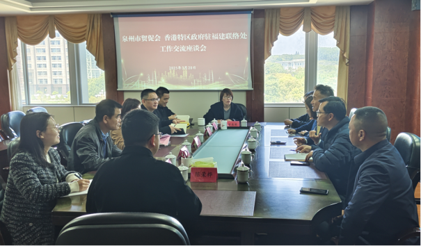 近日,市貿(mào)促會(huì)舉行座談會(huì),與到訪(fǎng)的香港特區(qū)政府駐福建聯(lián)絡(luò)處鄭震生主任一行進(jìn)行工作交流。