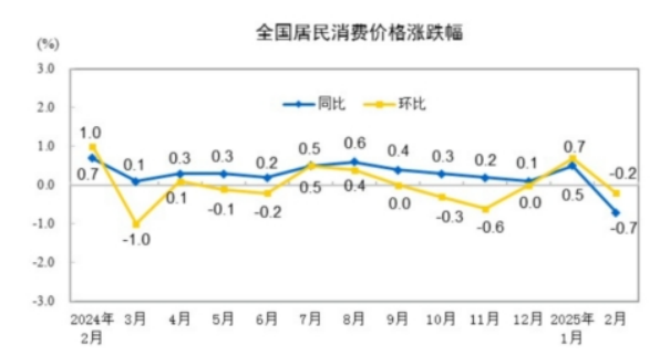3月9日,國(guó)家統(tǒng)計(jì)局最新發(fā)布的月度數(shù)據(jù)顯示,受春節(jié)錯(cuò)月、假期和部分國(guó)際大宗商品價(jià)格波動(dòng)等因素影響,2月份,居民消費(fèi)價(jià)格指數(shù)(CPI)環(huán)比下降0.2%,同比下降0.7%;工業(yè)生產(chǎn)者出廠價(jià)格指數(shù)(PPI)環(huán)比下降0.1%,同比下降2.2%。從結(jié)構(gòu)看,一些領(lǐng)域價(jià)格顯現(xiàn)積極變化,CPI中部分工業(yè)消費(fèi)品和服務(wù)價(jià)格穩(wěn)中有漲,PPI降幅有所收窄,當(dāng)前物價(jià)溫和回升的態(tài)勢(shì)沒有改變。