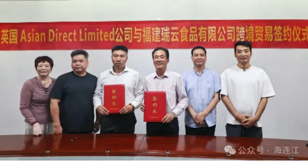 5月15日下午,福建瑞云食品有限公司(以下簡(jiǎn)稱瑞云食品)與英國(guó)Asian Direct Limited公司(伯明翰亞洲直銷有限公司)舉行跨境貿(mào)易簽約儀式,現(xiàn)場(chǎng)達(dá)成首批采購(gòu)意向訂單2000萬(wàn)元,這是連江海鮮首次“游”進(jìn)英國(guó)市場(chǎng)。