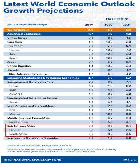 近期,多個(gè)國(guó)際組織相繼下調(diào)撒哈拉以南非洲地區(qū)今年經(jīng)濟(jì)增長(zhǎng)預(yù)期。國(guó)際貨幣基金組織在最新一期《撒哈拉以南非洲地區(qū)經(jīng)濟(jì)展望》報(bào)告中預(yù)測(cè),今年該地區(qū)經(jīng)濟(jì)將萎縮3.2%,較今年4月份預(yù)測(cè)值下調(diào)1.6個(gè)百分點(diǎn)。IMF預(yù)計(jì),地區(qū)內(nèi)兩大經(jīng)濟(jì)體尼日利亞和南非今年經(jīng)濟(jì)將分別萎縮5.4%和8%,分別較4月份預(yù)測(cè)值下調(diào)2個(gè)百分點(diǎn)和2.2個(gè)百分點(diǎn)。