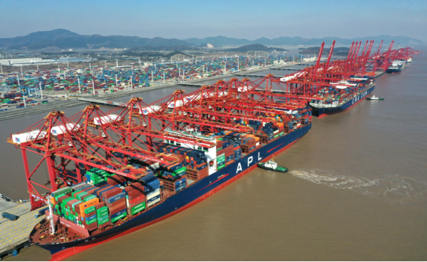 ??貨輪??吭谡憬瓕幉ㄖ凵礁勖飞礁蹍^(qū)碼頭(2024年1月24日攝,無人機(jī)照片)。新華社記者 黃宗治 攝
