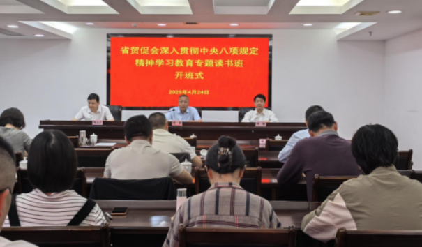 4月24日-25日,省貿(mào)促會舉辦深入貫徹中央八項規(guī)定精神學習教育讀書班暨黨組理論學習中心組(擴大)學習會。黨組書記、會長徐敏作開班動員和總結(jié)講話,會領(lǐng)導班子成員和全會黨員、干部及老干部支部代表參加培訓班。