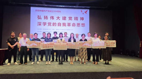 為熱烈慶祝中國共產(chǎn)黨成立104周年,深入學習貫徹黨的創(chuàng)新理論,傳承紅色基因,凝聚奮進力量,7月1日,省貿(mào)促會機關(guān)黨委聯(lián)合鼓西街道西湖社區(qū)、福建省文藝音像出版社在西湖影劇院舉辦“弘揚偉大建黨精神,深學黨的自我革命思想”主題活動。社區(qū)黨員群眾、共建單位代表等150多人齊聚一堂,共赴一場銘記初心、砥礪前行的精神盛宴。