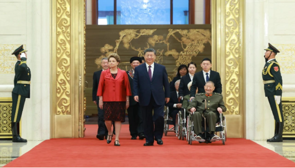 習(xí)近平指出,75年來,世界上有很多與中國人民志同道合、風(fēng)雨同舟的老朋友、好朋友,今天被授予“友誼勛章”的迪爾瑪·羅塞芙女士就是其中的杰出代表。中國人民永遠(yuǎn)不會(huì)忘記那些為中國發(fā)展、增進(jìn)中國人民同各國人民友誼作出突出貢獻(xiàn)的國際友人。中國人民愿攜手世界各國人民,維護(hù)世界和平,促進(jìn)共同發(fā)展,推動(dòng)構(gòu)建人類命運(yùn)共同體,開創(chuàng)人類更加美好的未來。