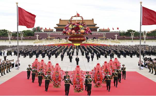 ??中央黨政軍群有關(guān)部門和北京市主要負(fù)責(zé)同志,各民主黨派中央、全國工商聯(lián)負(fù)責(zé)人和無黨派人士代表,在京老戰(zhàn)士、老同志和烈士親屬代表,功勛榮譽獲得者代表,全國少數(shù)民族參觀團成員,首都各界群眾代表等參加了儀式。