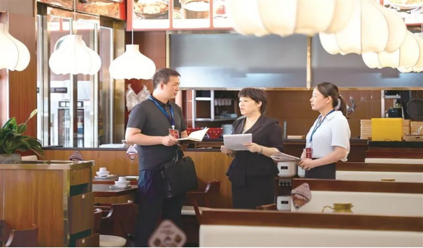 河南省漯河市郾城區(qū)紀(jì)委監(jiān)委圍繞公款吃喝、違規(guī)接受管理服務(wù)對象宴請等違反中央八項(xiàng)規(guī)定精神問題開展監(jiān)督檢查,一嚴(yán)到底狠剎歪風(fēng)邪氣。圖為近日,該區(qū)紀(jì)檢監(jiān)察干部在轄區(qū)某飯店了解相關(guān)情況。王曉 攝