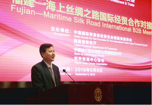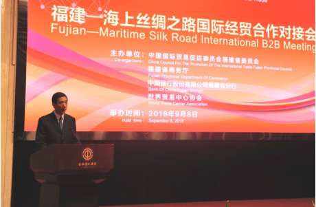 ?9月8日下午,省貿促會與省商務廳、中國銀行福建省分行和世界貿易中心協會在廈門杏園灣大酒店聯合主辦了“第四屆福建—海上絲綢之路國際經貿合作對接會”。省貿促會會長陳震、世界貿易中心協會審計委員會主席梅爾讓、中國銀行福建省分行行長楊展鵬出席了對接會并分別致辭。