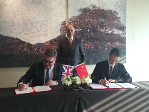 張秋會(huì)長(zhǎng)同英中貿(mào)協(xié)總裁傅仲森簽訂諒解備忘錄,英中貿(mào)協(xié)主席沙遜勛爵見(jiàn)證