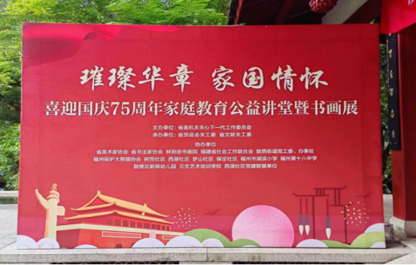 為慶祝中華人民共和國(guó)成立75周年,深入學(xué)習(xí)貫徹黨的二十屆三中全會(huì)精神、省委第十一屆六次全會(huì)精神,2024年9月30日至10月3日,省直關(guān)工委主辦,省貿(mào)促會(huì)關(guān)工委和省文聯(lián)關(guān)工委在西湖書院承辦了“璀璨華章 家國(guó)情懷 ——喜迎國(guó)慶75周年家庭教育公益講堂暨書畫展”。