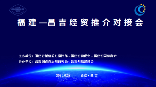 為貫徹落實(shí)福建省委、省政府關(guān)于對(duì)口援疆工作的總體部署,扎實(shí)推進(jìn)福建與新疆的“一帶一路”雙核心交流互動(dòng),助力福建對(duì)口援疆工作。2025年6月28日,由福建省援疆前方指揮部、福建省貿(mào)促會(huì)、福建省國(guó)際商會(huì)主辦,昌吉回族自治州商務(wù)局、昌吉福建商會(huì)協(xié)辦的“福建—昌吉經(jīng)貿(mào)推介對(duì)接會(huì)”在新疆昌吉回族自治州迎賓館舉辦。福建省援疆前方指揮部、部分分指揮部領(lǐng)導(dǎo)、新疆貿(mào)促會(huì)、福建省貿(mào)促系統(tǒng)、新疆福建商會(huì)、新疆生產(chǎn)建設(shè)兵團(tuán)福建商會(huì)、昌吉州福建商會(huì)以及閩疆兩地企業(yè)家代表130余人現(xiàn)場(chǎng)參會(huì)。
